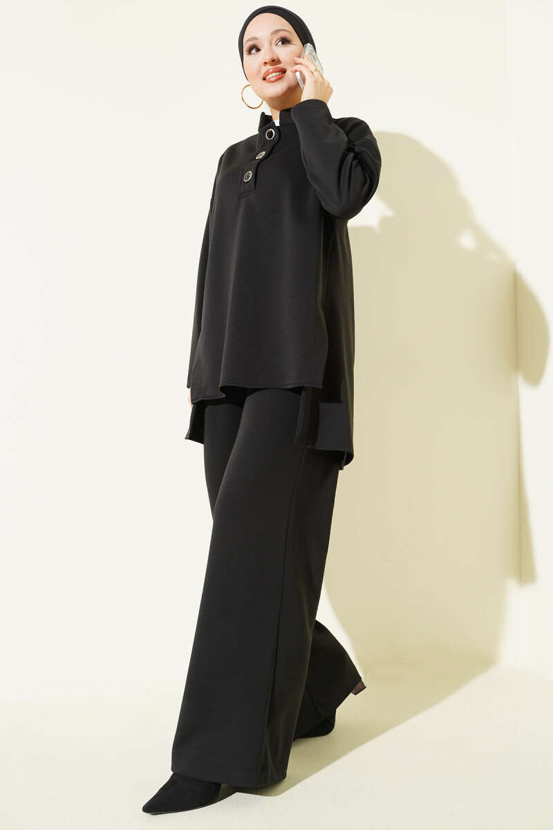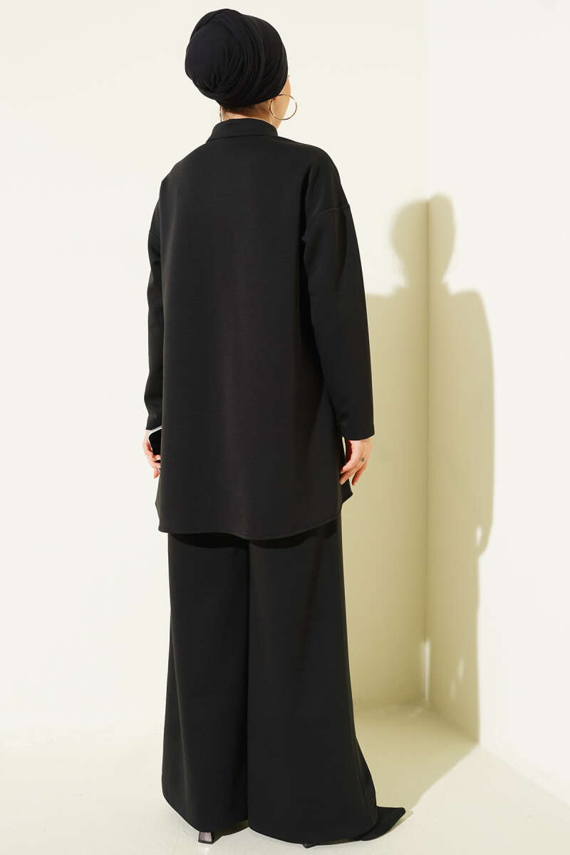 Ayrobin Two-Piece Suit with Shoulder Epaulets and Long Cardigan in Indigo