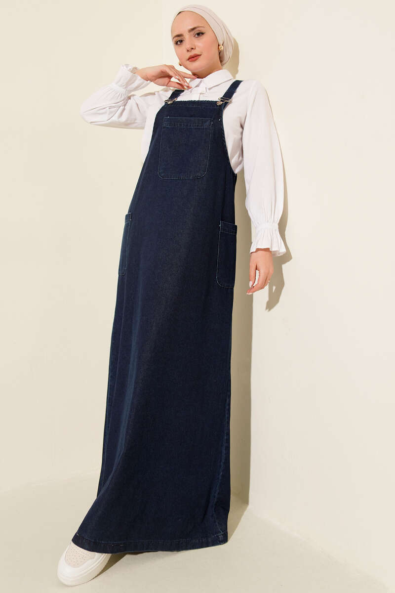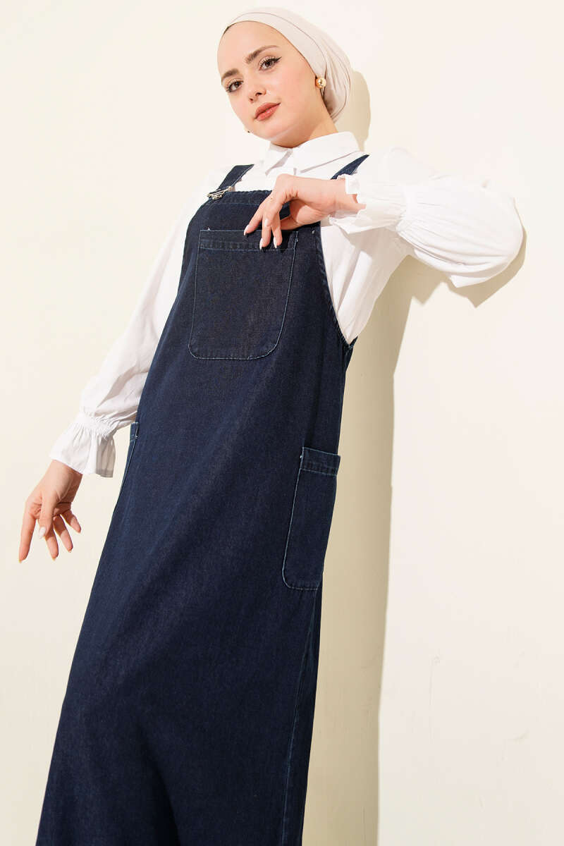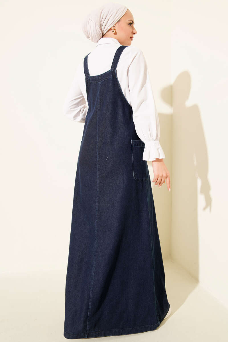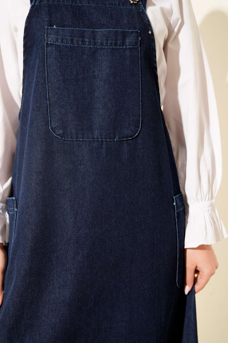 Blue Denim Dress with Pocket and Straps