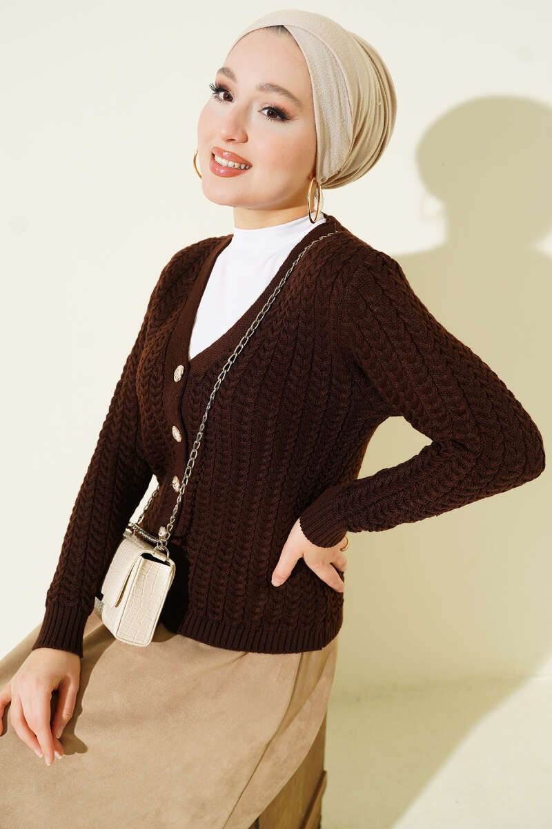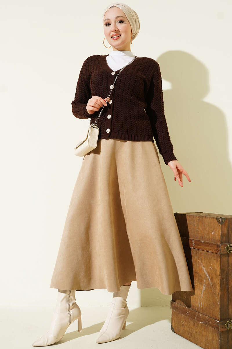 Ayrobin Two Piece Suit with Shoulder Epaulets and Long Cardigan, Dusty Rose