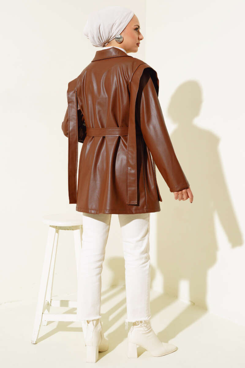 Ruffled Rope Belted Tunic Two Piece Set Stone