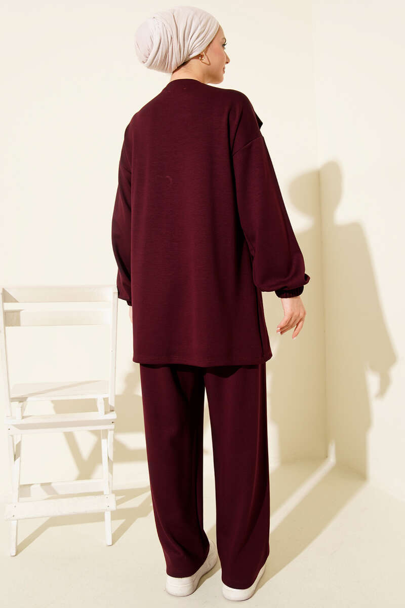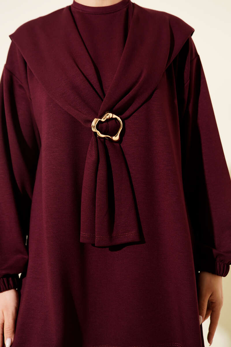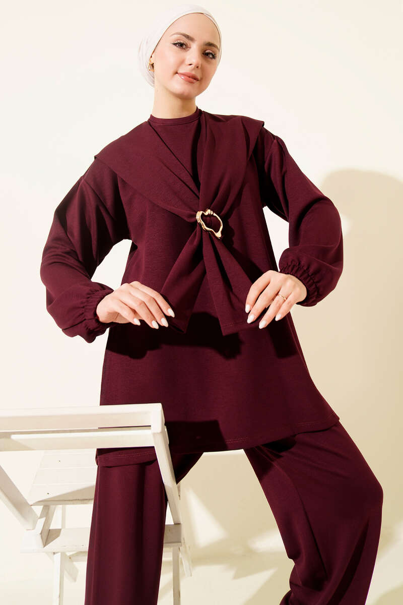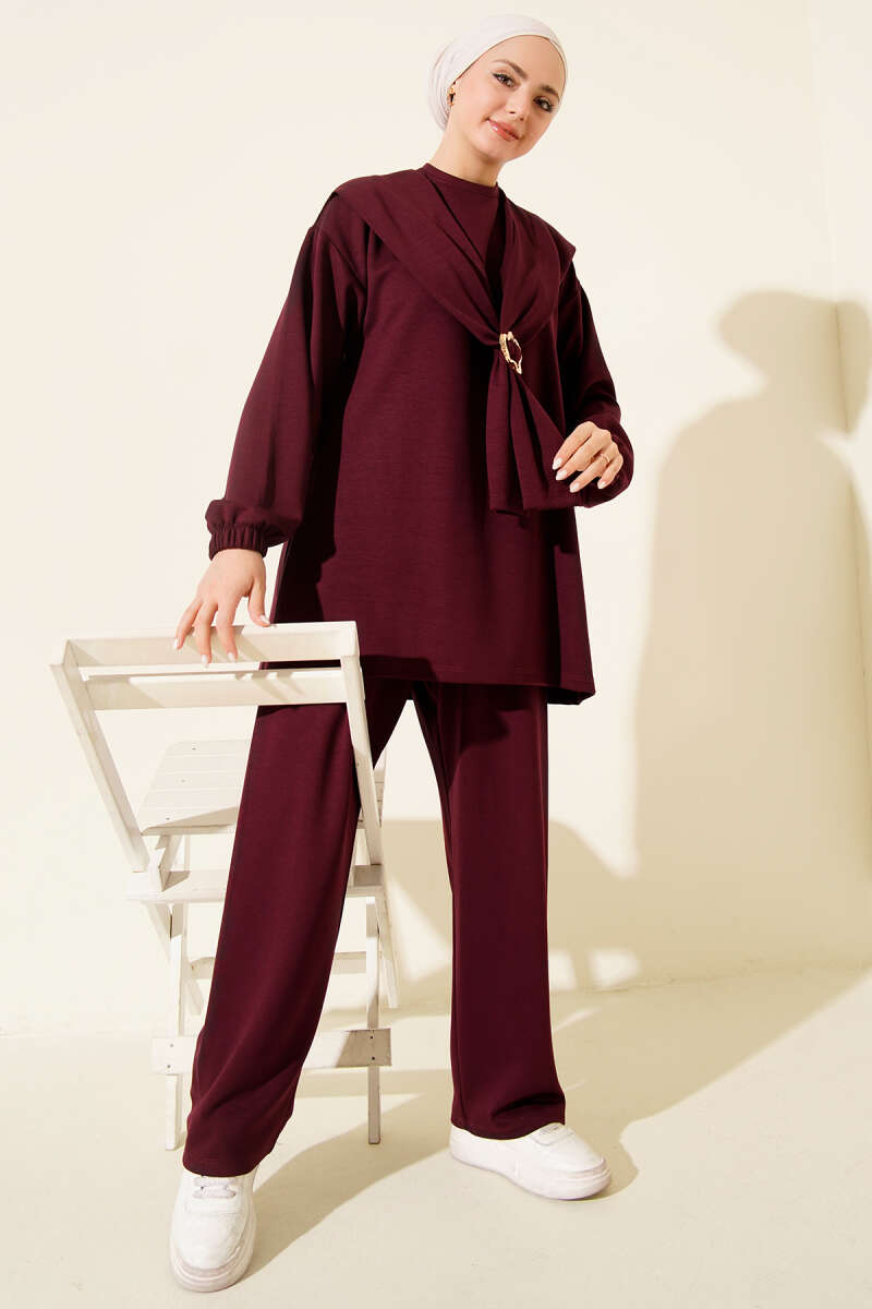 Burgundy Two-Piece Set with Gold Buckle and Scarf