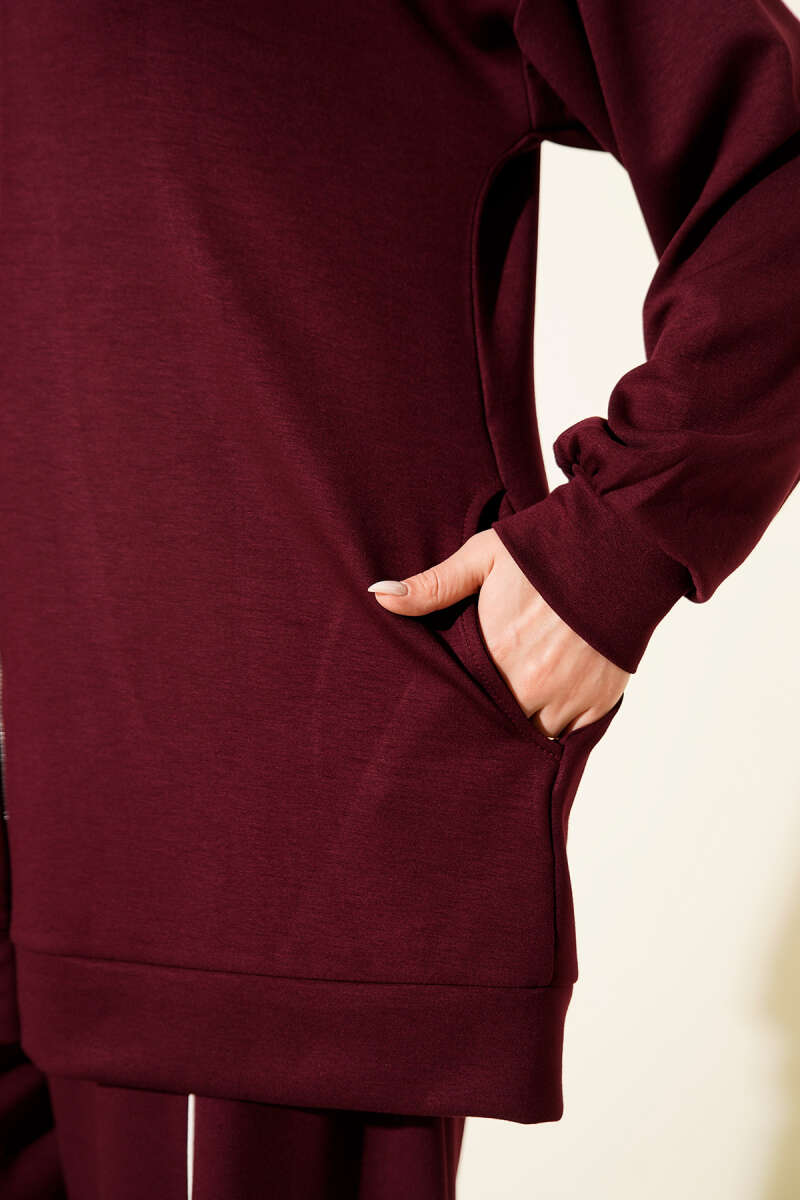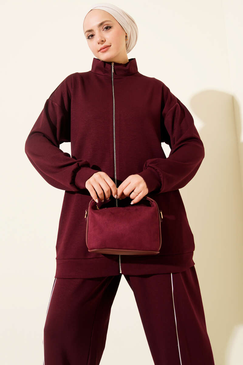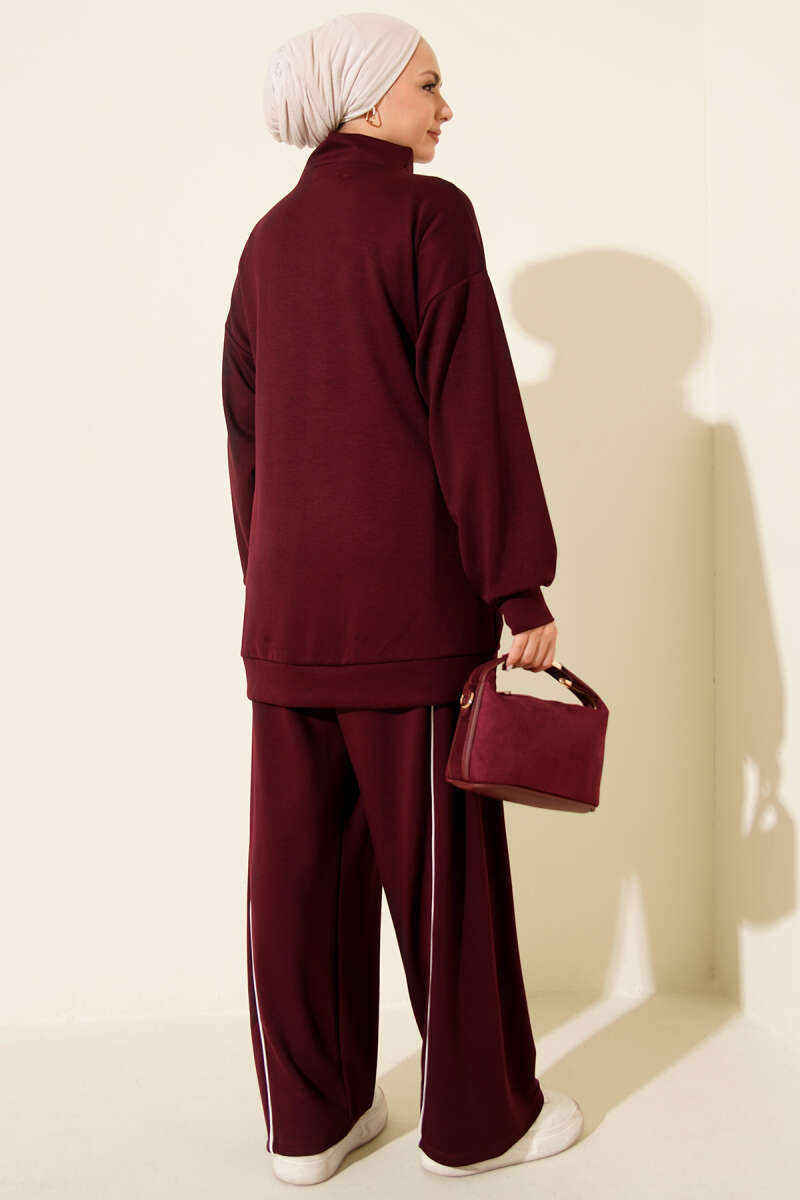 Burgundy Two-Piece Set with Zipper and Piped Pants