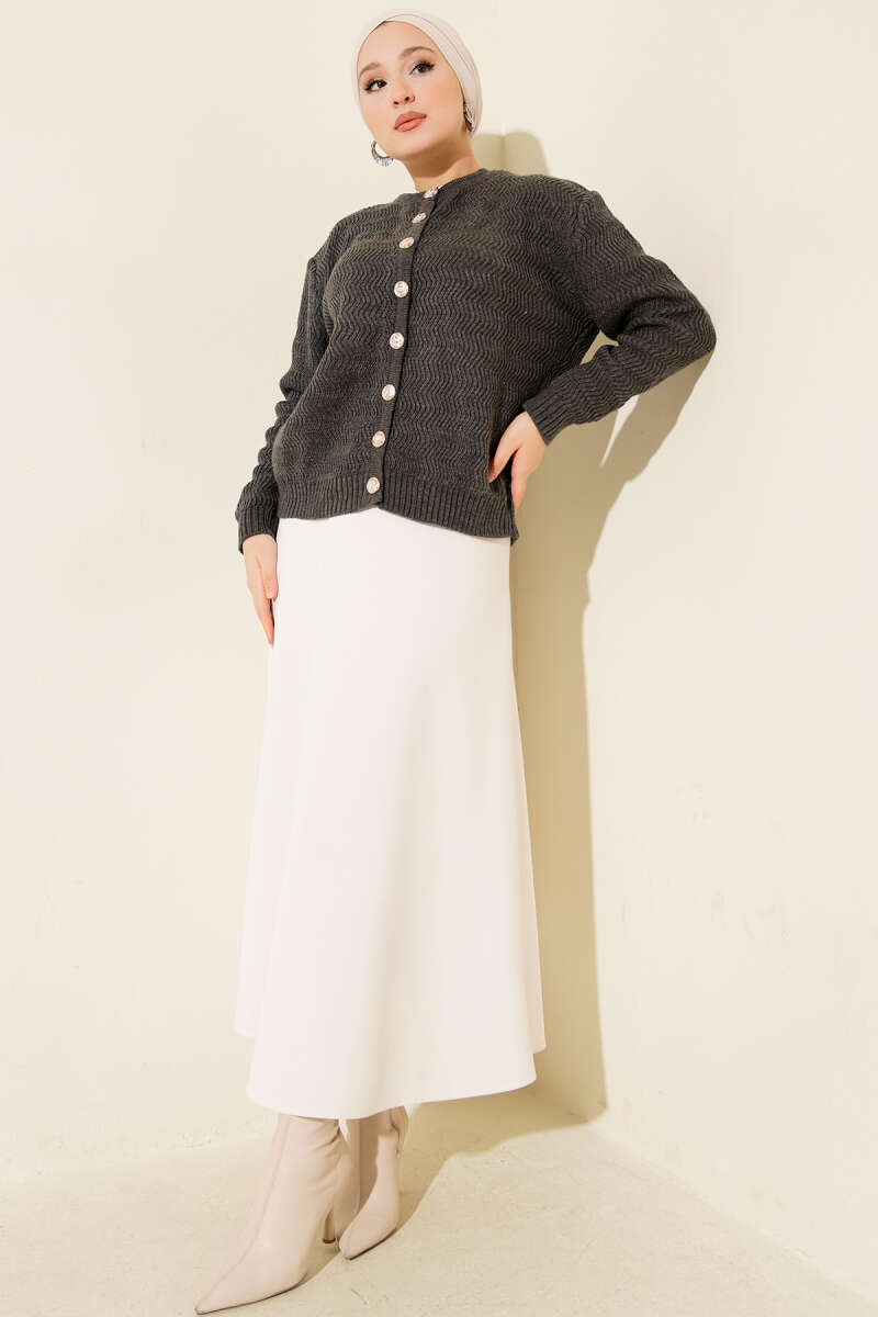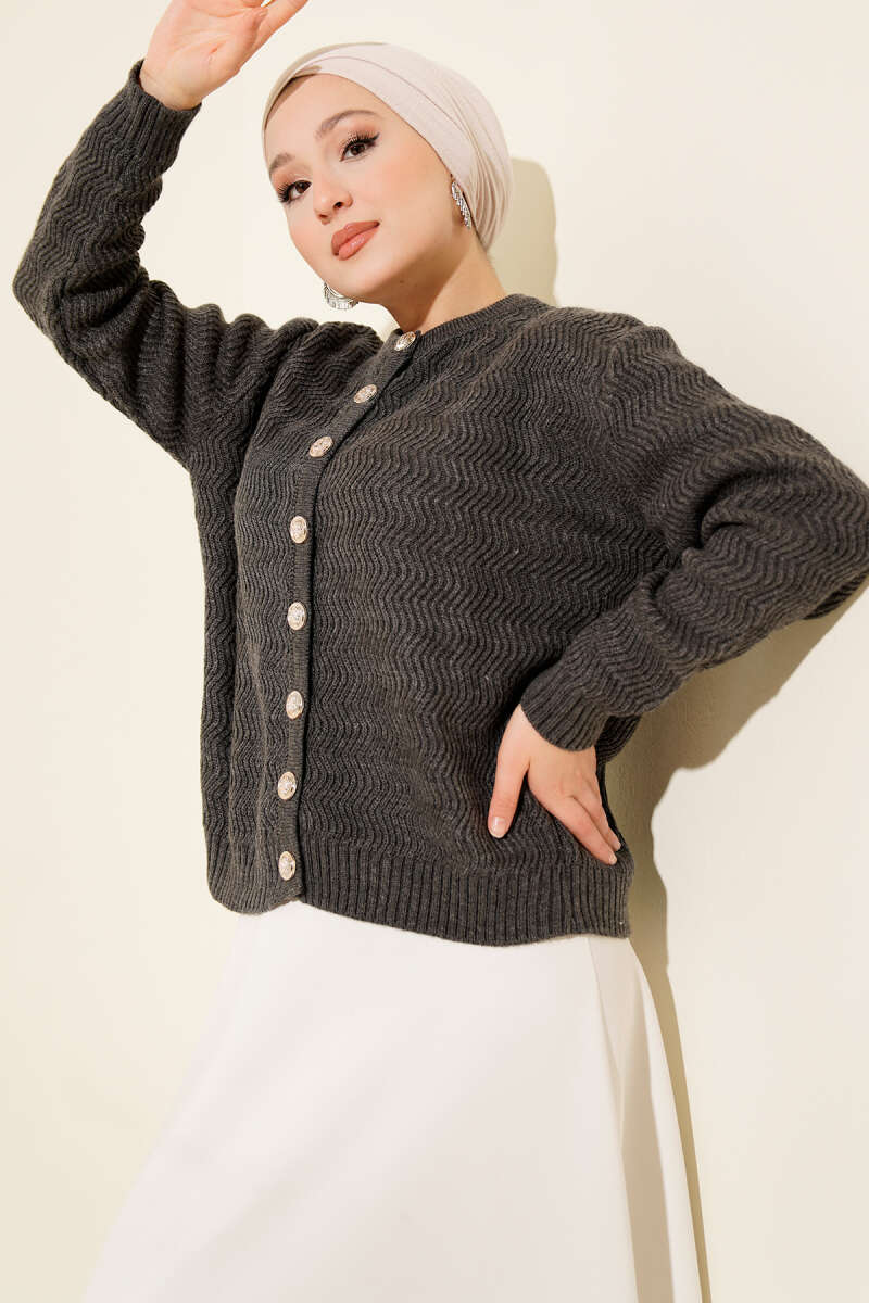 Chevron Patterned Gold Button Knit Cardigan in Charcoal