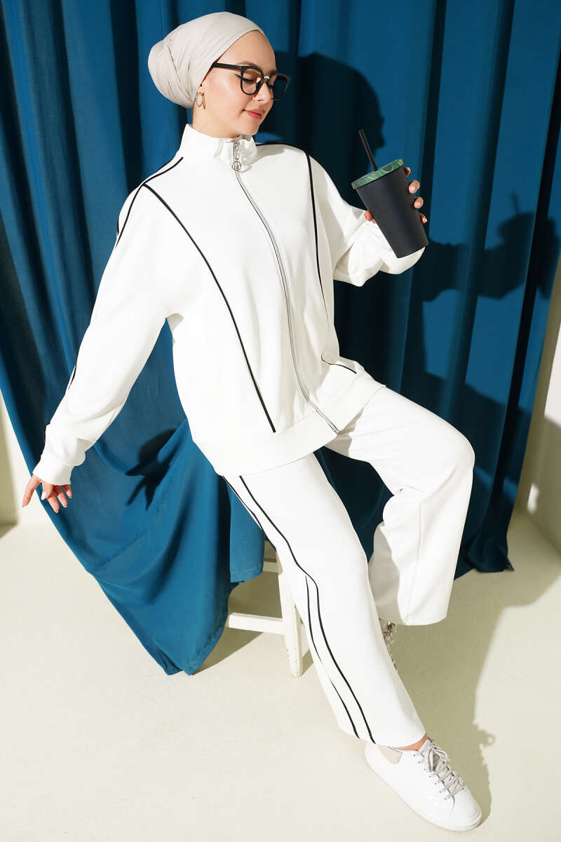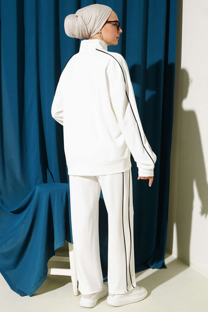 Elastic Leg Hooded Two Piece Set White