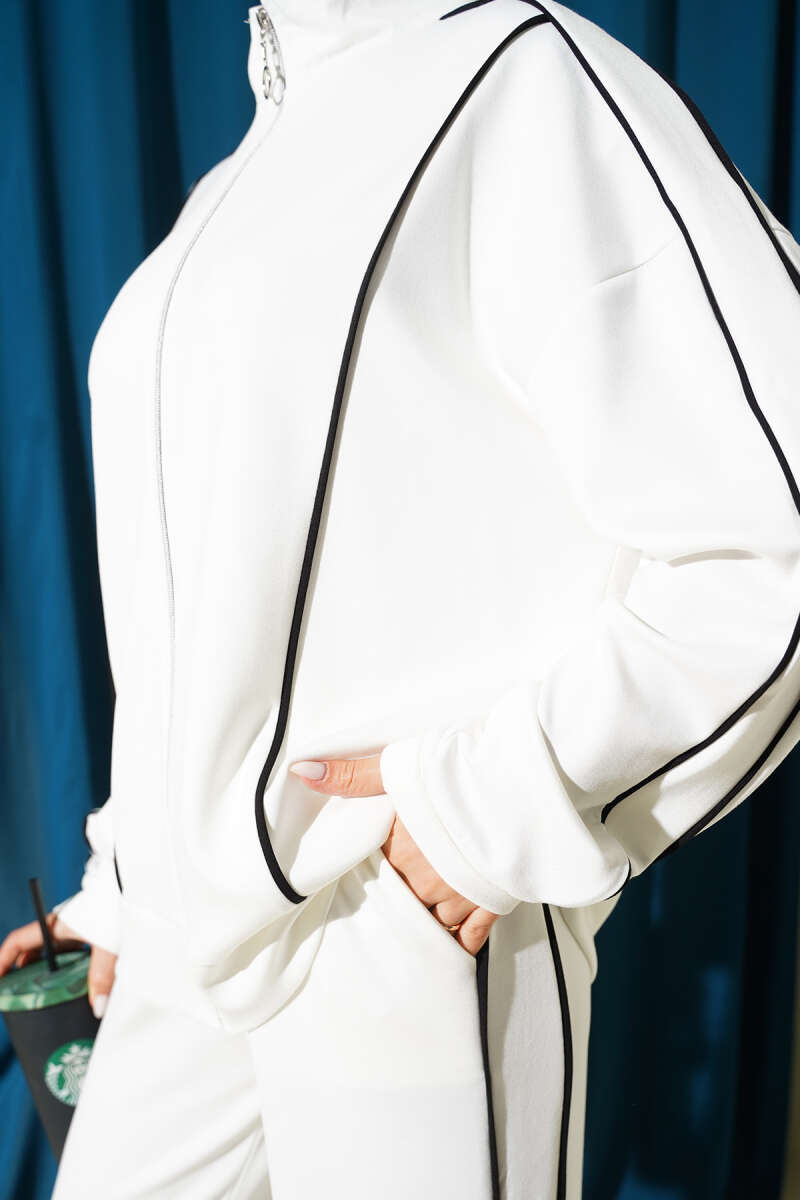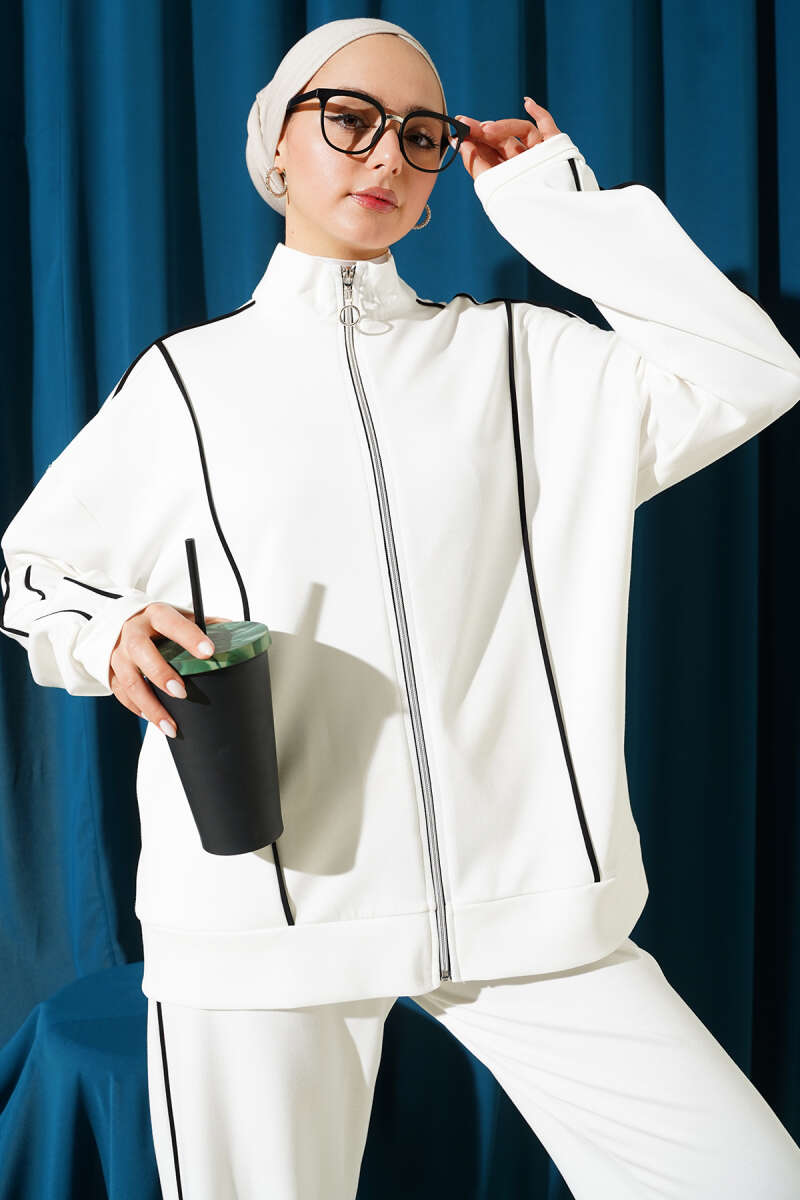 Detailed Zip Front Two-Piece Set in Cream