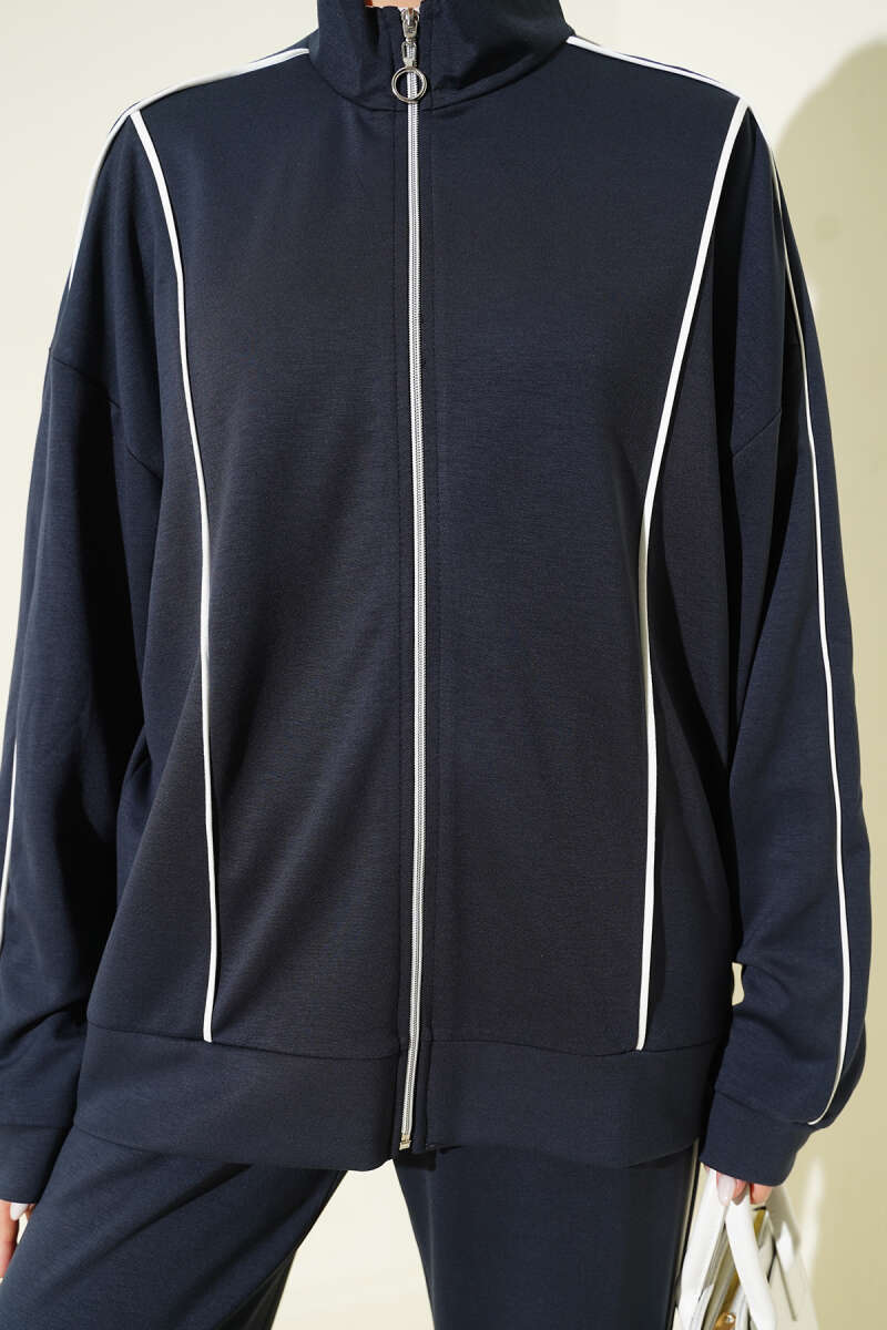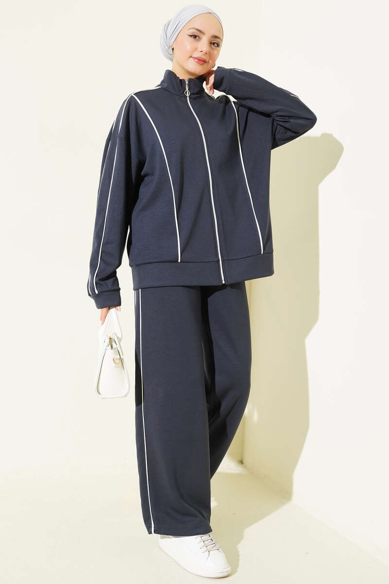 Detailed Zippered Lounge Duo Set in Slate Gray