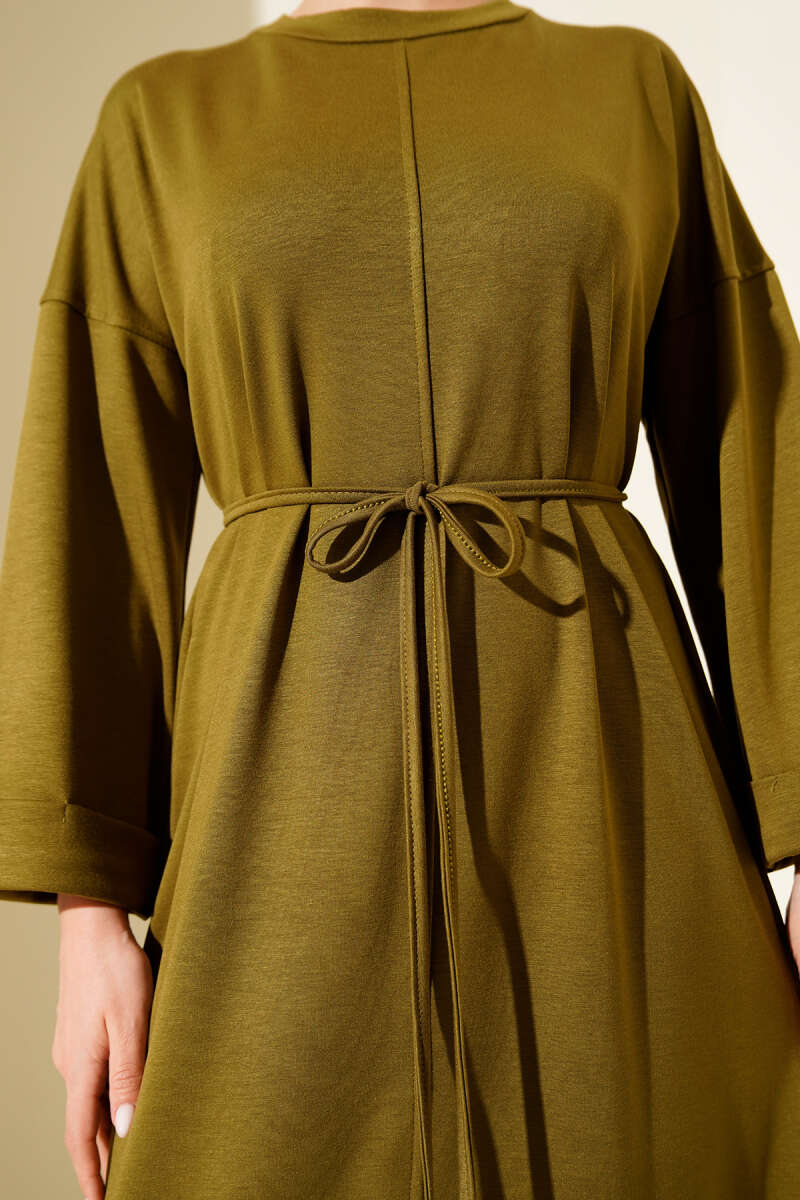 Ruffled Rope Belted Tunic Two Piece Set Stone