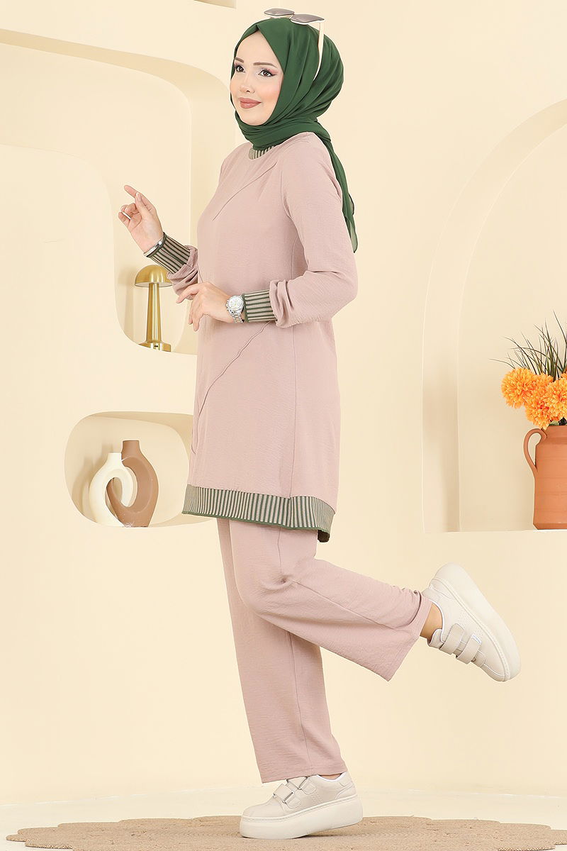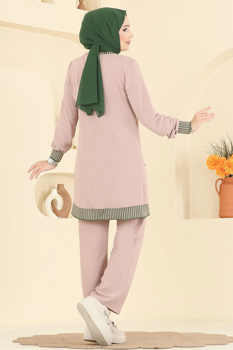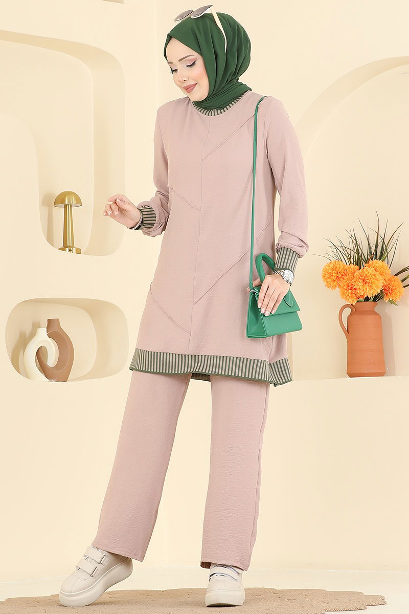 Elastic Leg Hooded Two Piece Suit, Almond Green