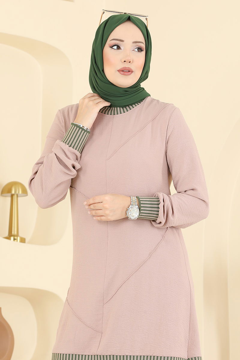 Ruffled Rope Belted Tunic Two Piece Set Stone