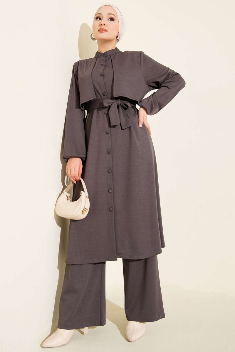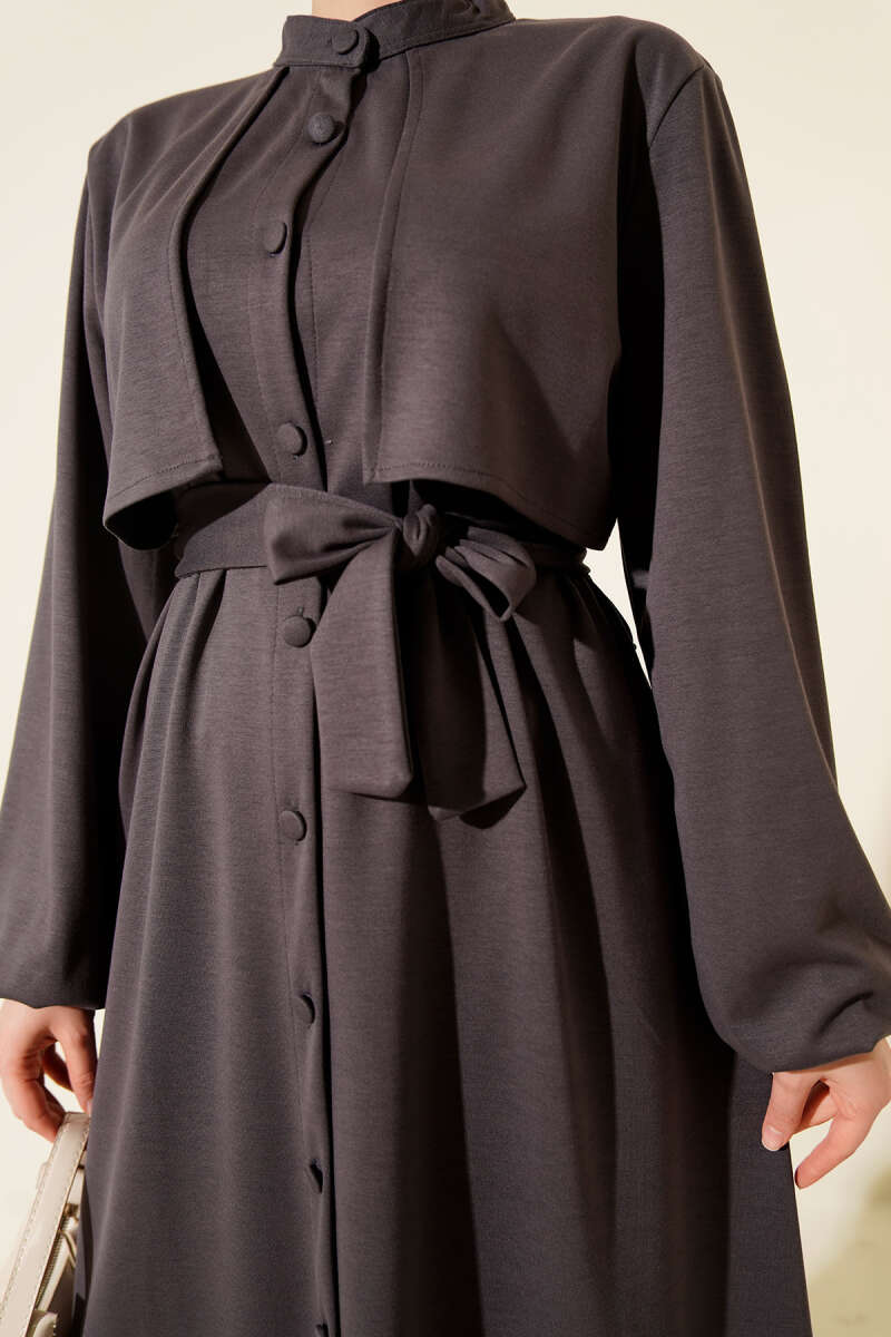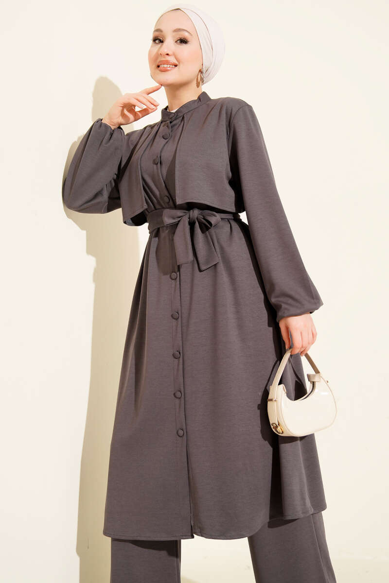 Hakim Collar Cape Style Two-Piece Set in Charcoal
