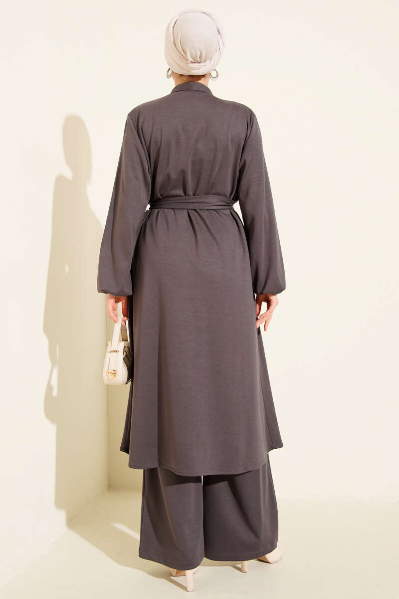 Ayrobin Two Piece Suit with Shoulder Epaulets and Long Cardigan in Gray