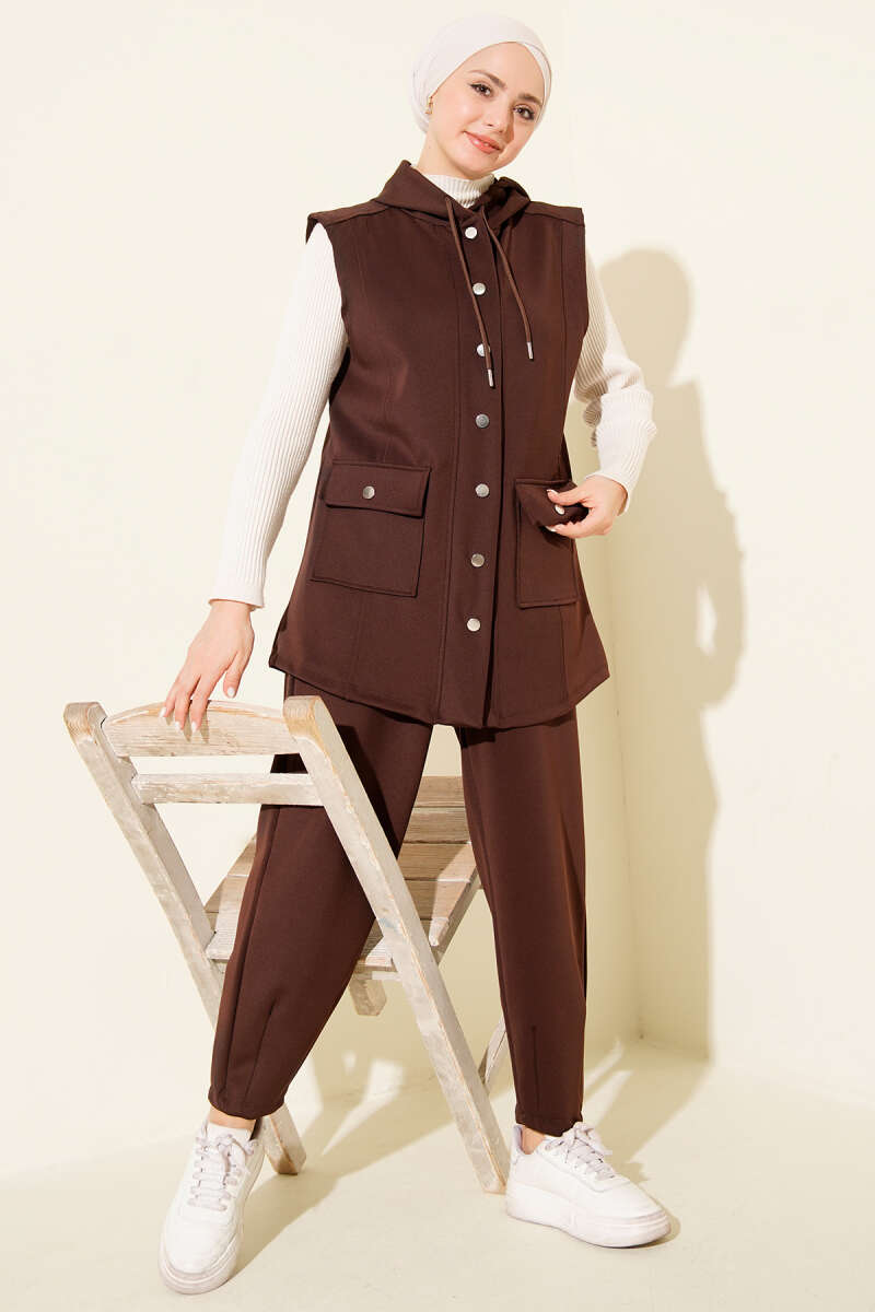 Elasticated Leg Hooded Two Piece Set Biscuit
