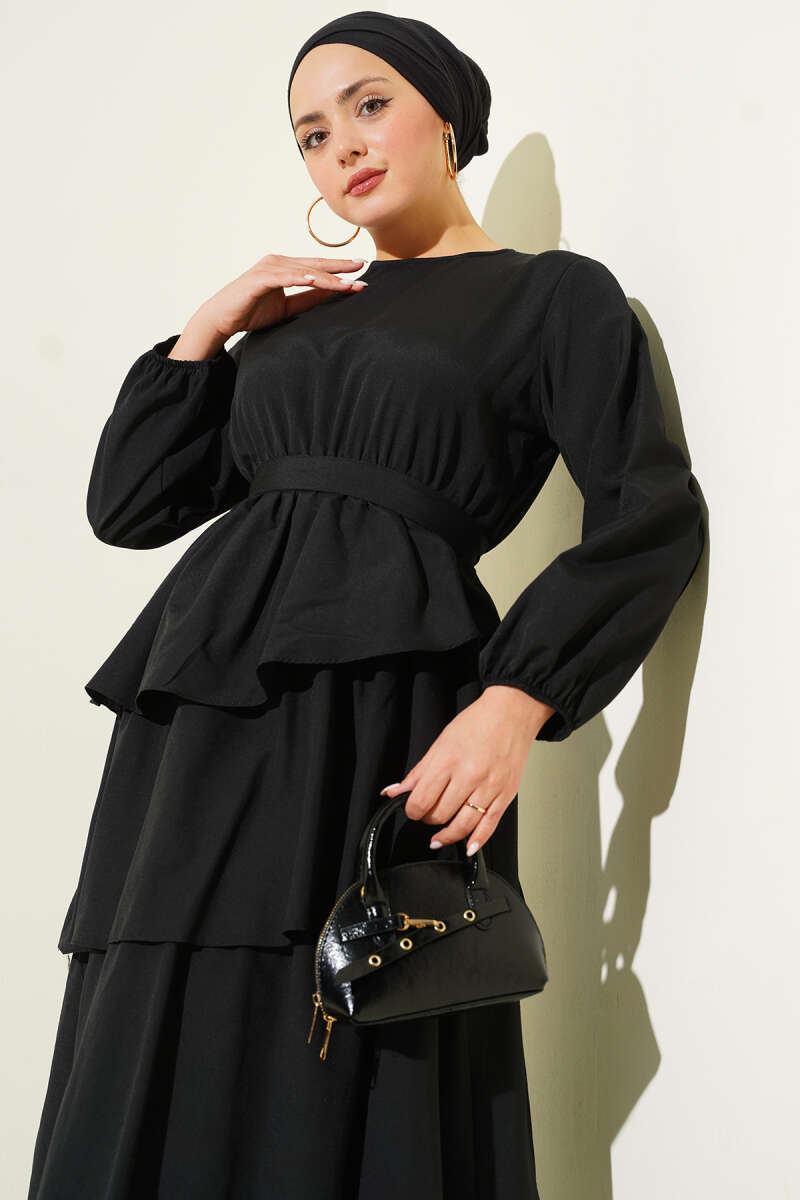 Ruffled Rope Belted Tunic Two Piece Set Stone