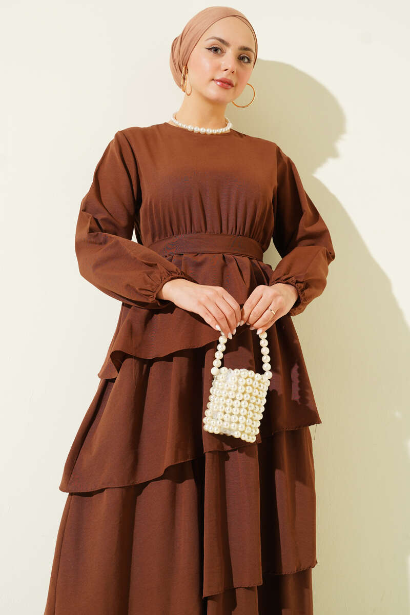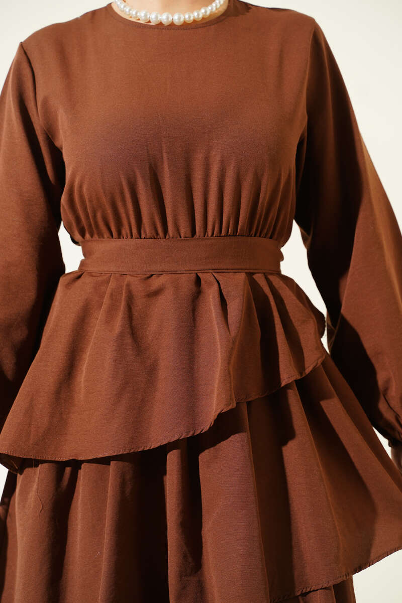 Ruffled Rope Belted Tunic Two Piece Set Stone