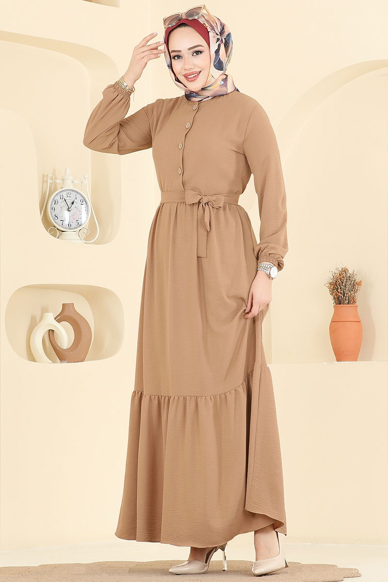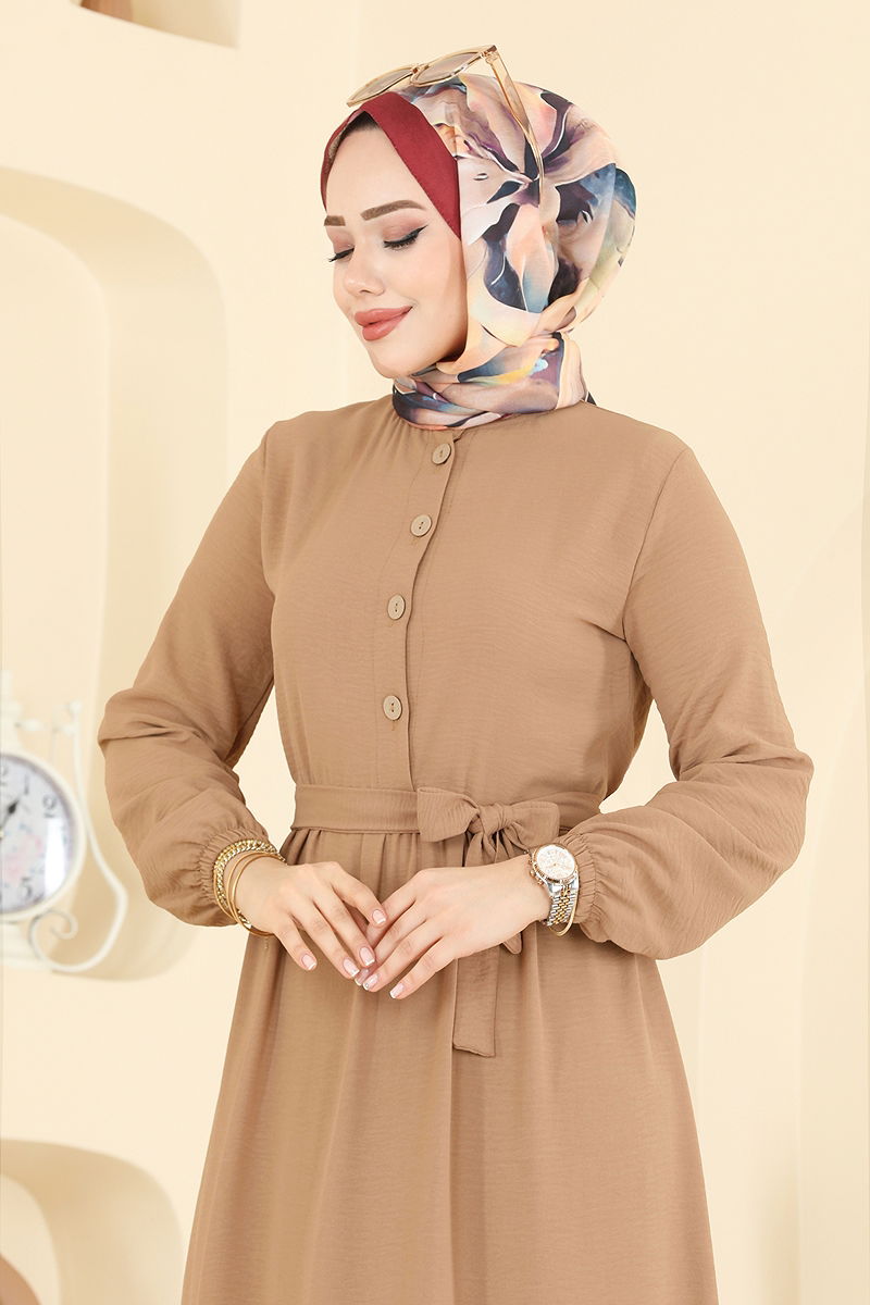 Ruffled Rope Belted Tunic Two Piece Set Stone
