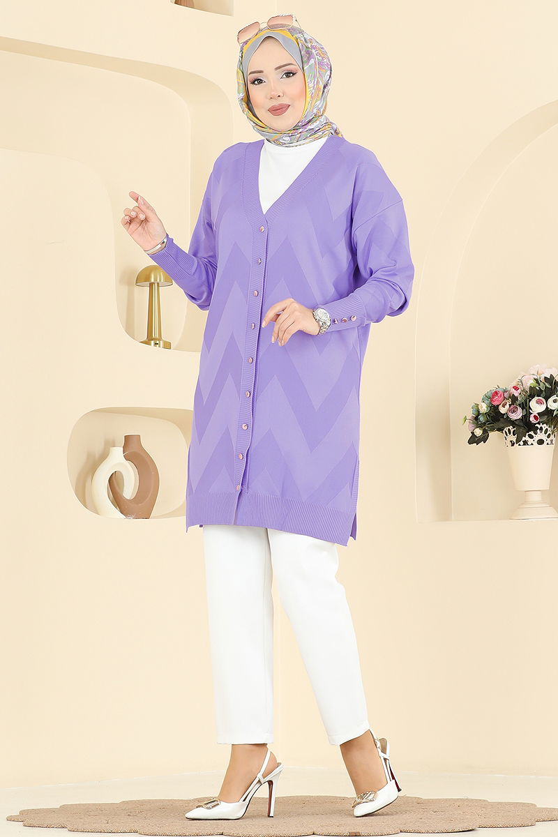 Lilac Mercerized Cardigan with Gold Buttons