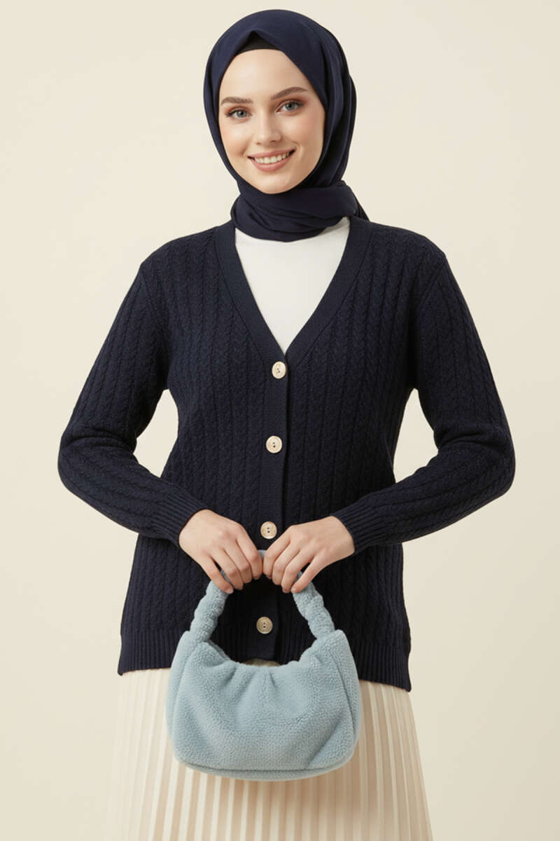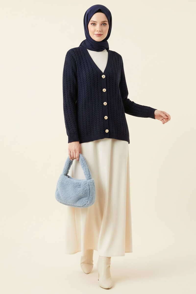 Ayrobin Two-Piece Suit with Shoulder Epaulets and Long Cardigan in Indigo
