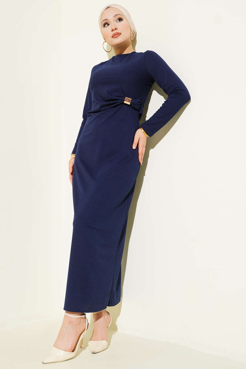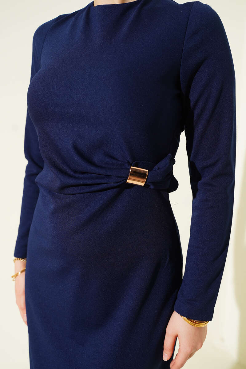Ayrobin Two-Piece Suit with Shoulder Epaulets and Long Cardigan in Indigo
