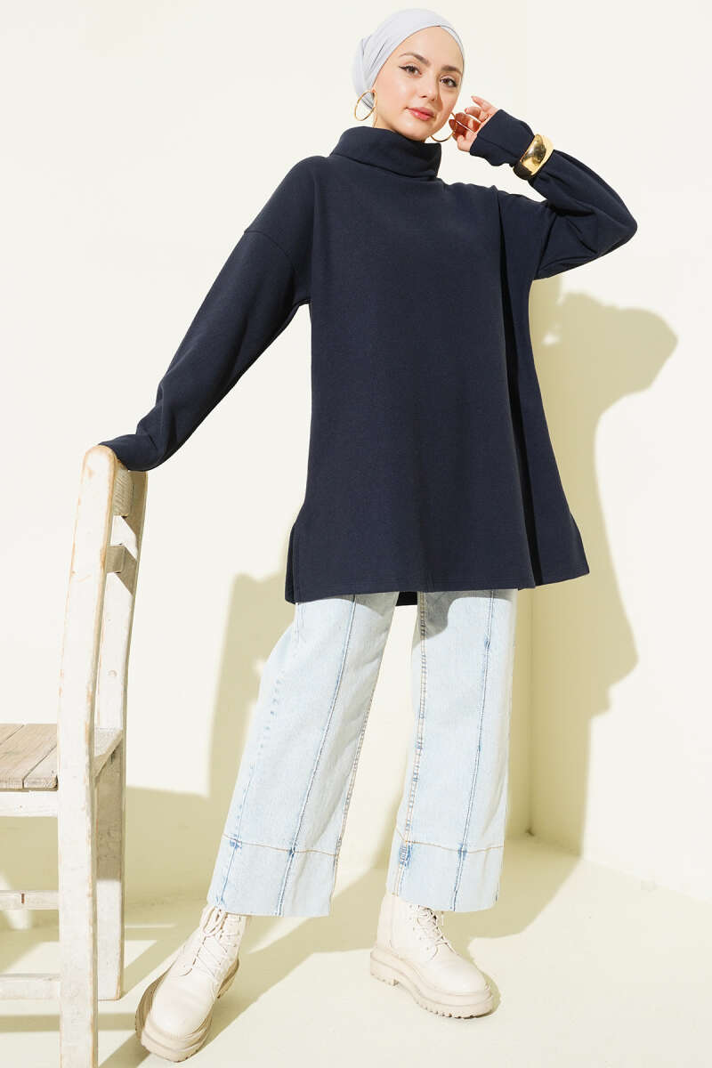 Navy Blue Fisherman Neck Thessaloniki Tunic