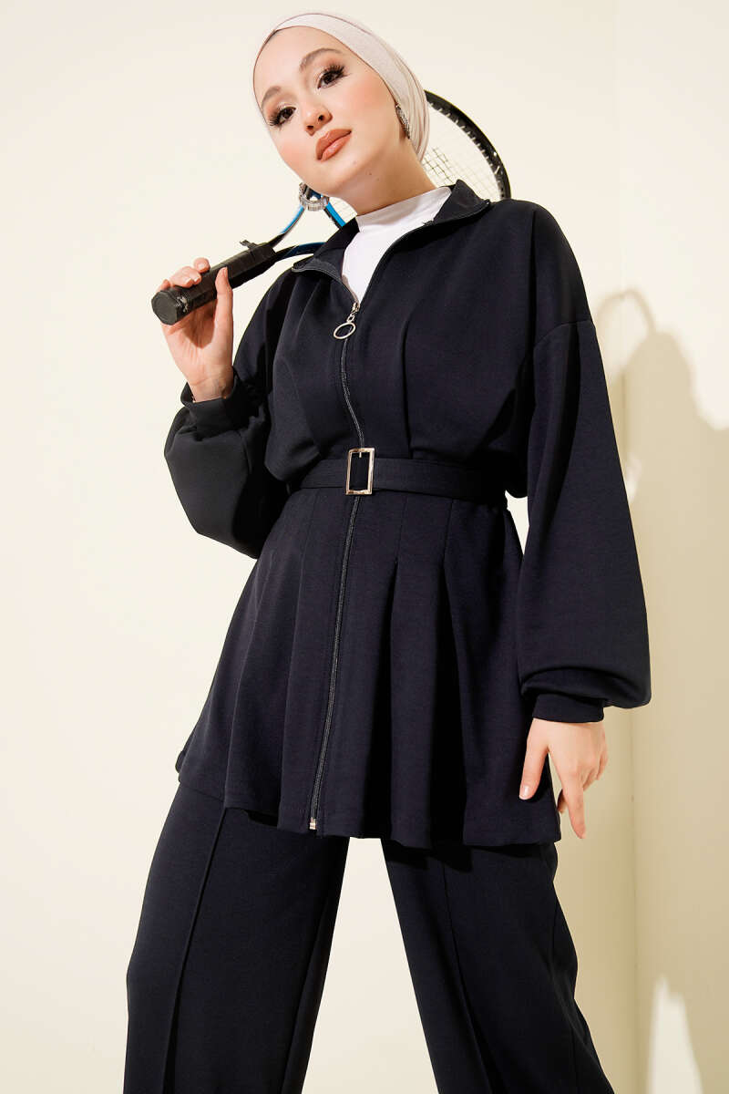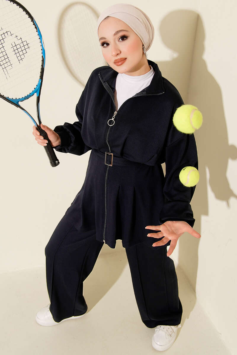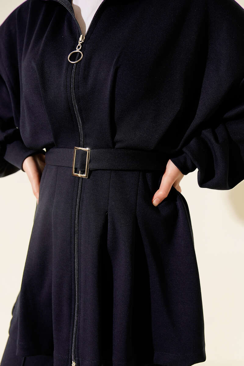 Navy Blue Oysho Set with Zipper and Belt