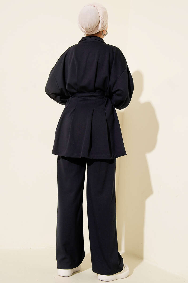 Ayrobin Two-Piece Suit with Shoulder Epaulets and Long Cardigan in Indigo