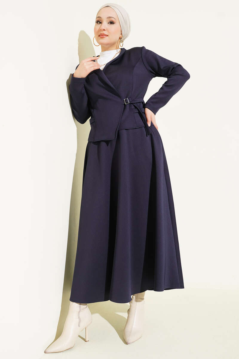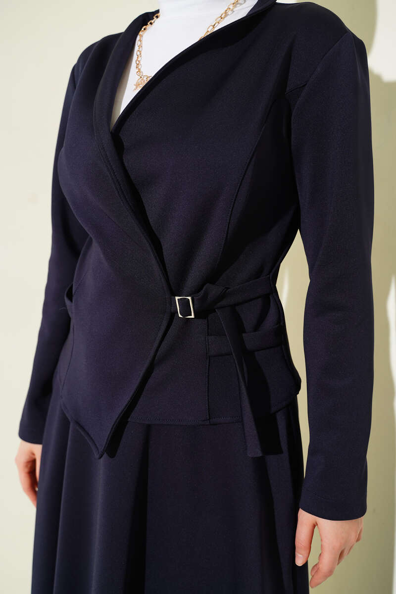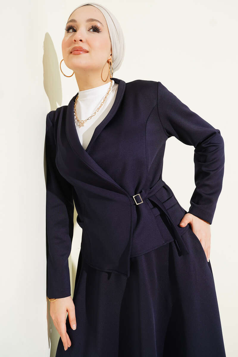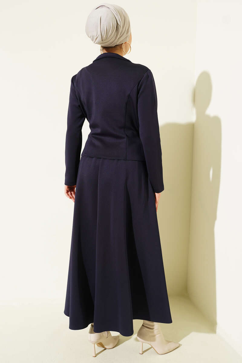 Ayrobin Two-Piece Suit with Shoulder Epaulets and Long Cardigan in Indigo