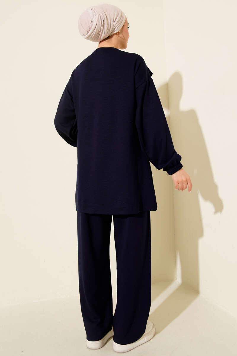 Ayrobin Two-Piece Suit with Shoulder Epaulets and Long Cardigan in Indigo