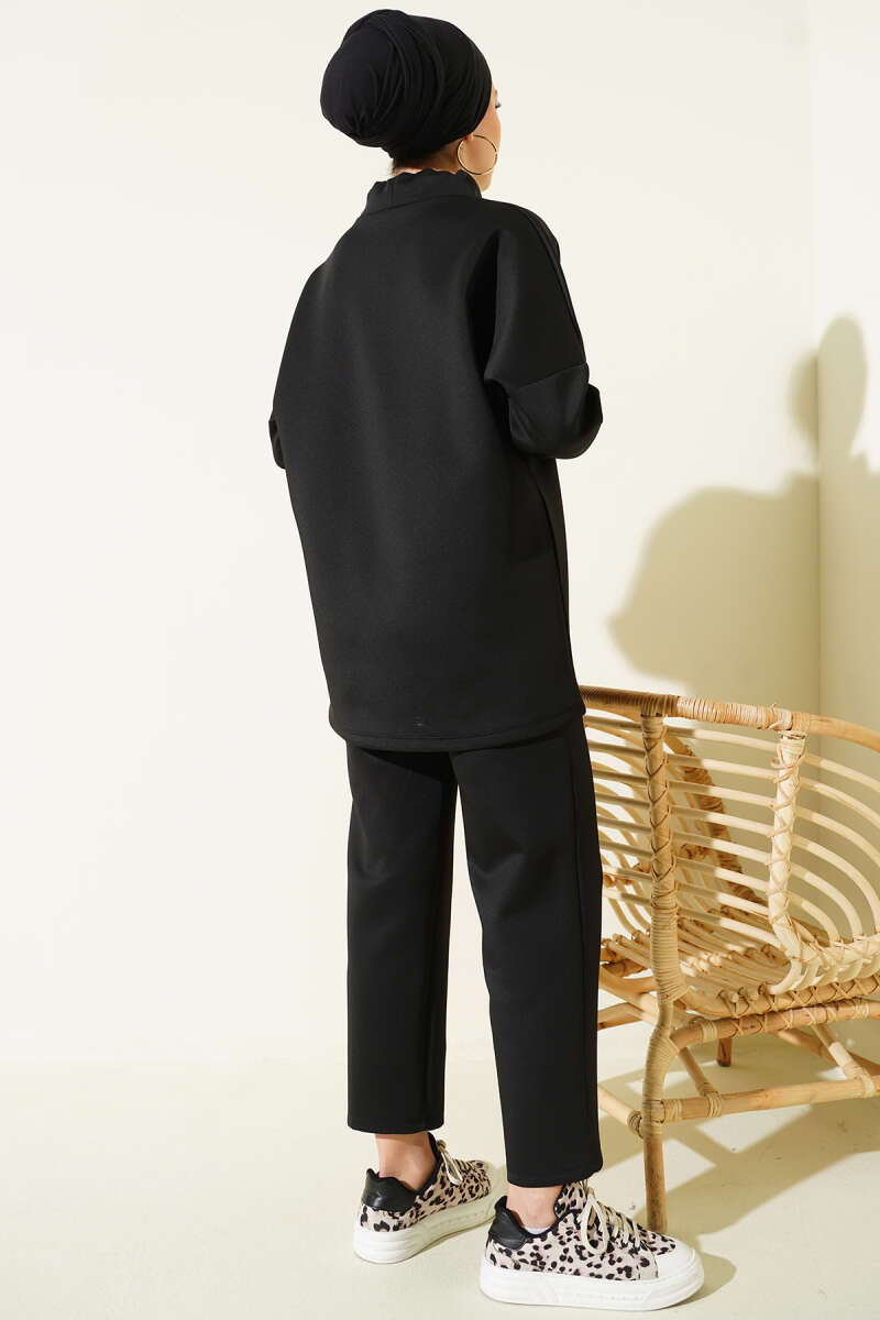Ayrobin Two-Piece Suit with Shoulder Epaulets and Long Cardigan in Indigo