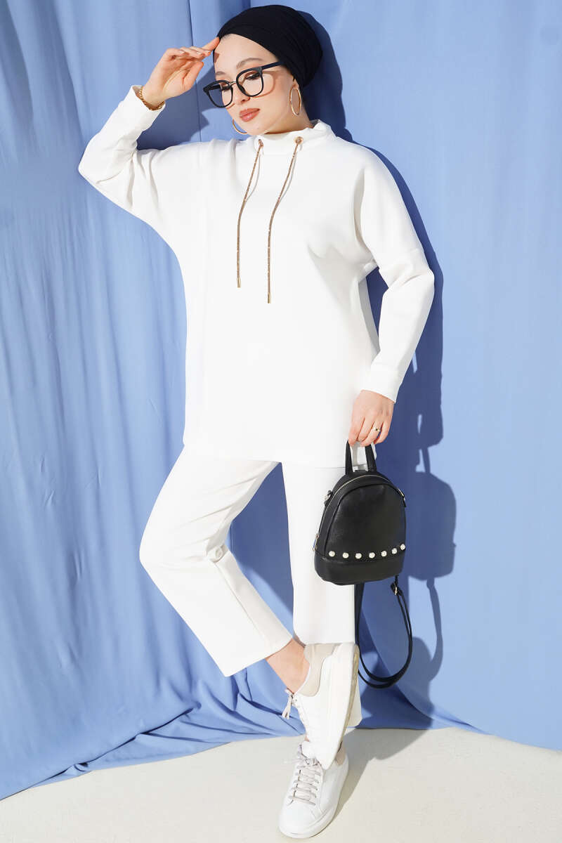 Elasticated Leg Hooded Two Piece Set Biscuit