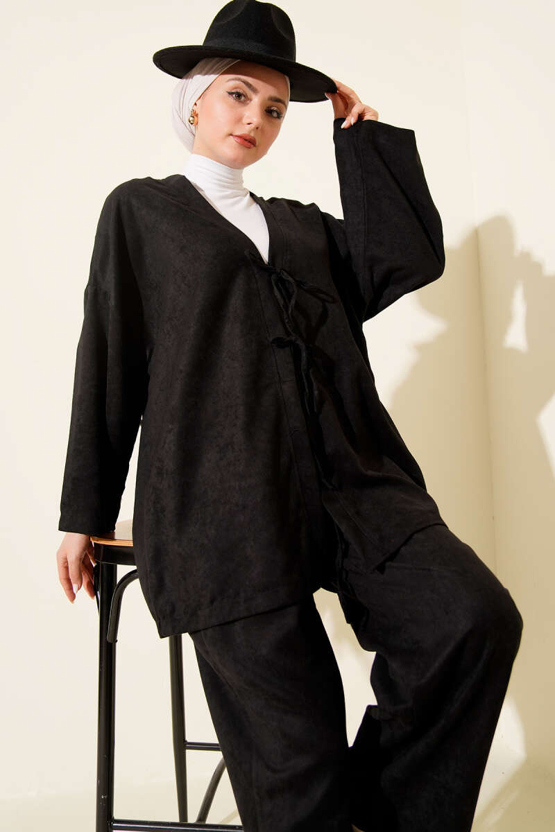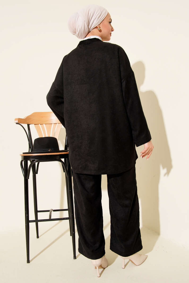 Ayrobin Two-Piece Suit with Shoulder Epaulets and Long Cardigan in Indigo