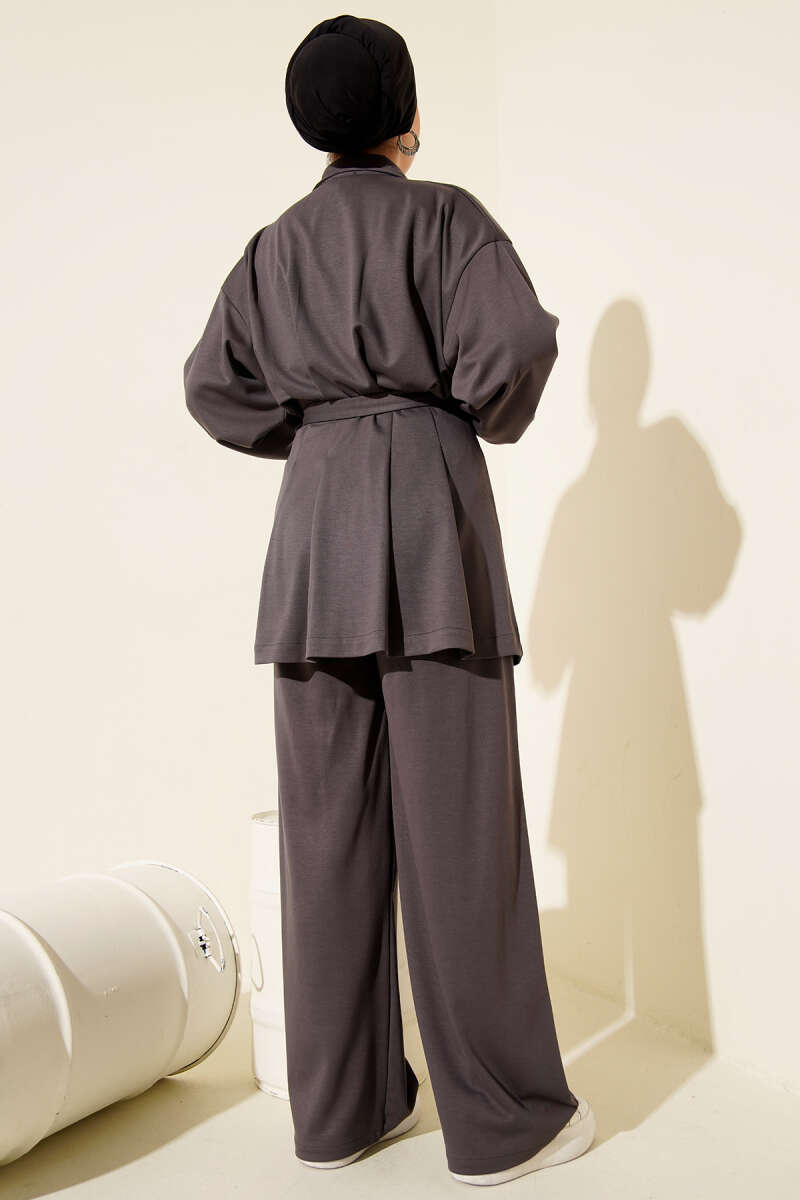 Ayrobin Two Piece Suit with Shoulder Epaulets and Long Cardigan in Gray