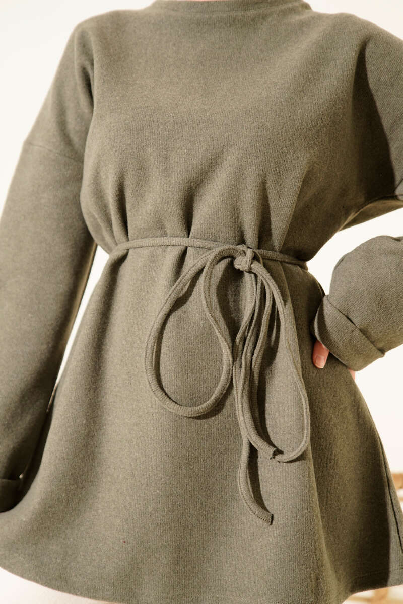 تونيك مكشكش بحزام من قطعتين مرصع بالأحجار