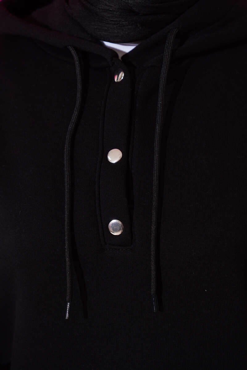 سويت شيرت نصف كُبس من ثلاثة خيوط - أسود